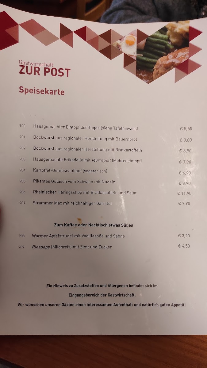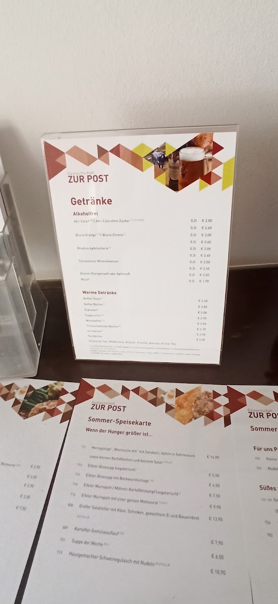 Welcome to Gastwirtschaft Zur Post, a charming restaurant nestled in the picturesque Mechernich, Germany. This inviting eatery boasts a cozy atmosphere, perfect for casual dining or special gatherings. The menu offers a delightful array of traditional German cuisine, showcasing local ingredients that reflect the region's culinary heritage.
